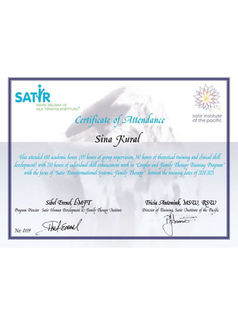 Türkiye'ye döndükten sonra Avrupa Aile Terapileri Derneği Eğitim Enstitüleri Birimi (EFTA-TIC) tam üye olarak Satir İnsan Gelişimi ve Aile Terapisi Enstitüsü ile Kanada Satir Pasifik Enstitüsü'nün ortaklığında yürütülen üç yıllık Satir Dönüşümsel Sistemik Terapi Modelini tamamladım. Bu eğitim bireysel, çift ve ailelerle çalışmanın temellerini, ayrıca sistemik olarak terapi süreci yönetmeyi öğrettiğini söyleyebilirim. Eğitim sürecinde Kathlyne Maki-Banmen'in "Çiftler ve Çatışma" ve Pınar İlkkaracan'ın "Aile içi Şiddet" gibi eğitim modüllerinde başarılı oldum.